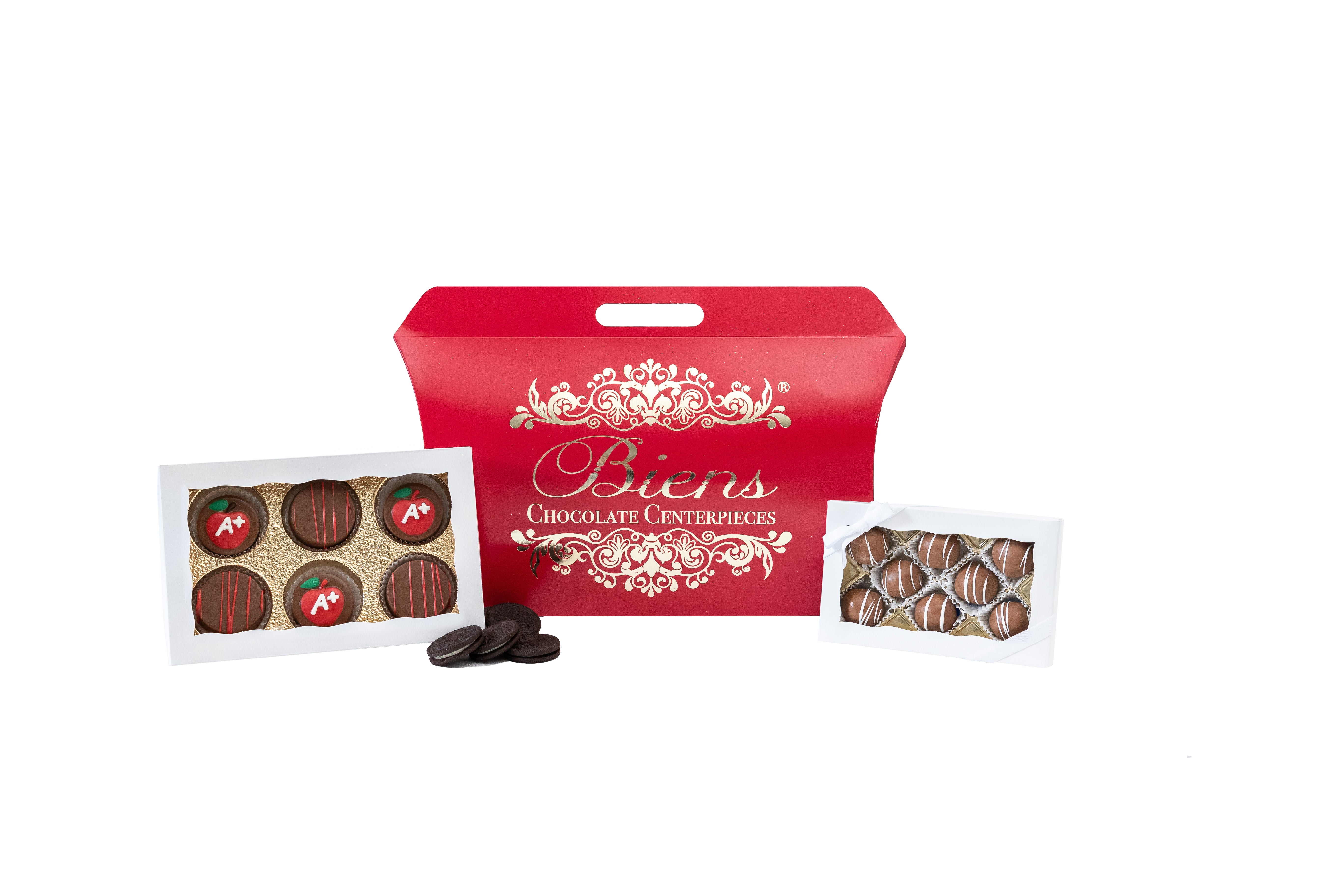 Delight educators and students with our exquisite Chocolate-Covered Apple Oreo & Bien Tote Box. Each custom-designed A+ Apple Oreo and our signature Bien truffle are meticulously hand-dipped in luxurious chocolate, creating an indulgent treat that's perfect as a thank-you gift, a graduation present, or a classroom reward. Celebrate academic excellence and sweeten any educational occasion with these gourmet chocolate delights, beautifully packaged and ready to gift.