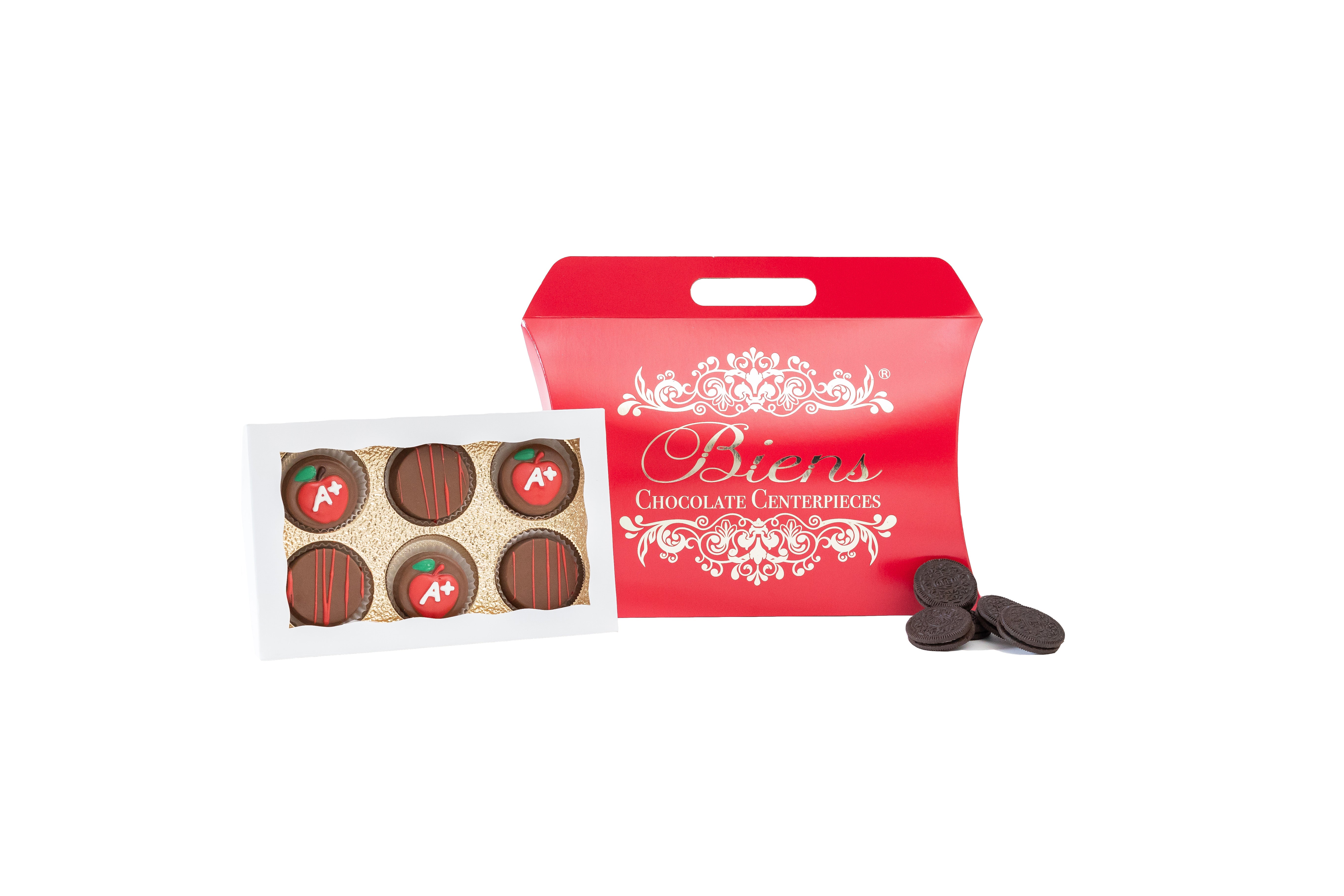 Discover the charm of our six-piece Apple A+ Oreo Purse Box, a delightful celebration of educational achievement. Each A+ Apple Oreo is enrobed in rich, decadent chocolate and intricately hand-decorated to honor educators and students. This elegant purse box is the perfect token of appreciation for teachers or a congratulatory gift for students who excel. Indulge in a taste of luxury and make a lasting impression with this exquisite chocolate creation.