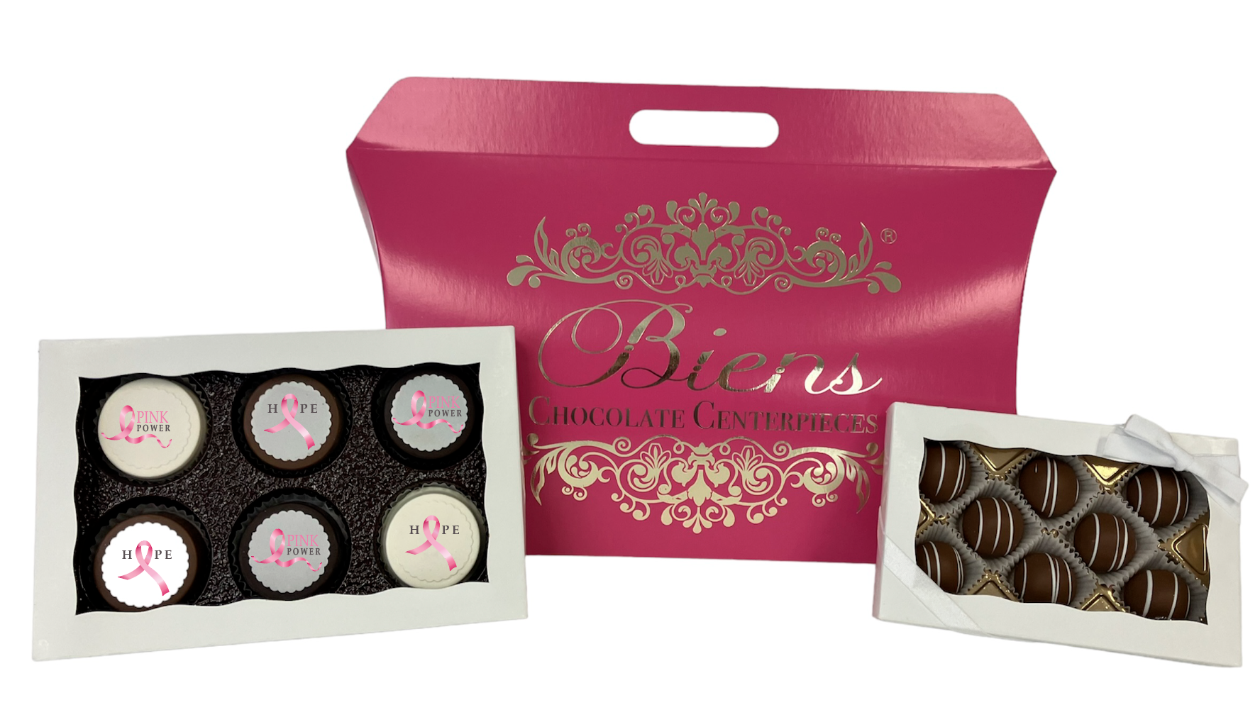 Spreading strength and hope with a little sweetness - or looked so lovely! Complete with a Breast Cancer edible ribbon logo - our custom Tote gift box is the perfect treat to spoil your warriors.