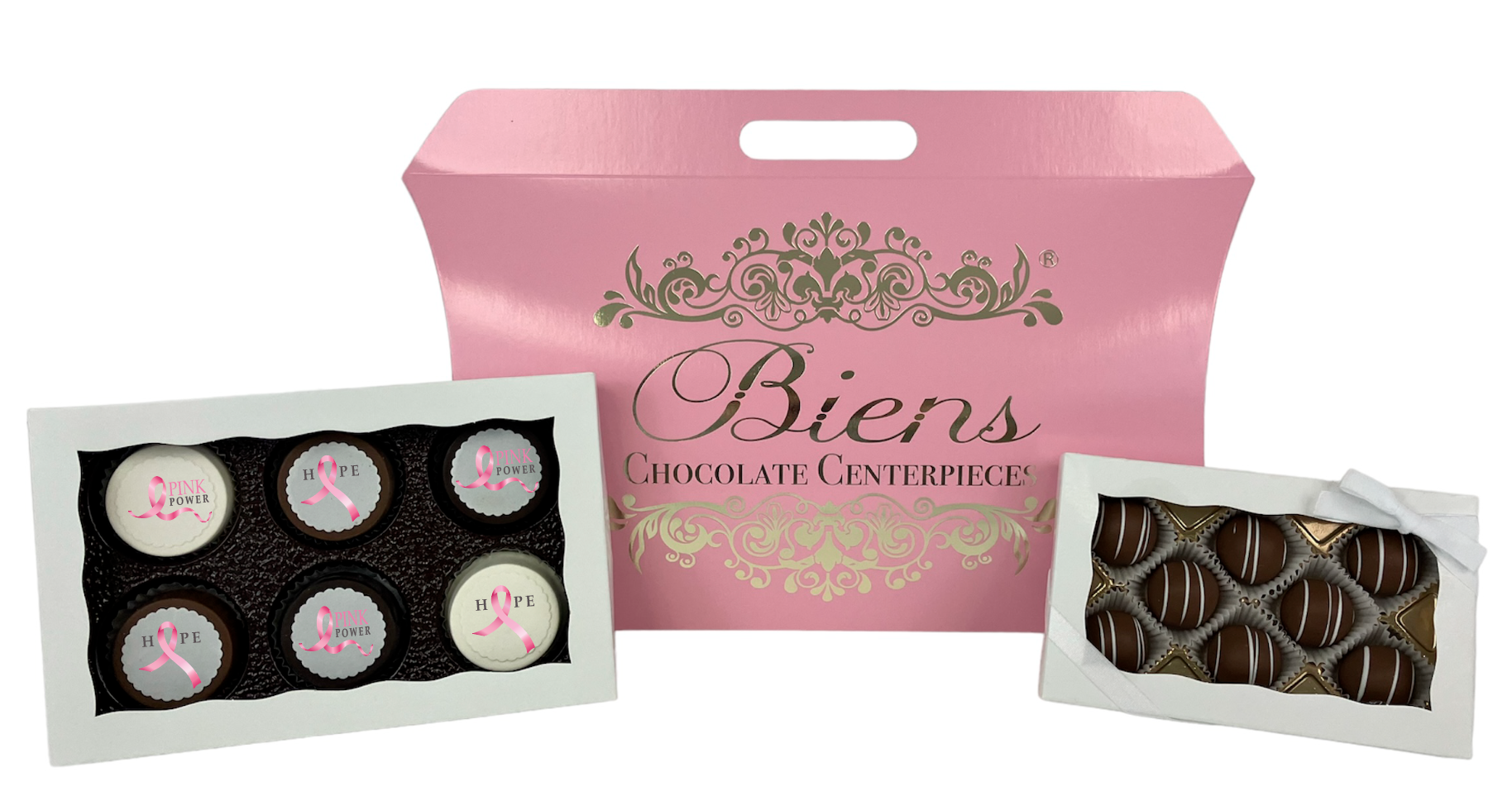Spreading strength and hope with a little sweetness - or looked so lovely! Complete with a Breast Cancer edible ribbon logo - our custom Tote gift box is the perfect treat to spoil your warriors.