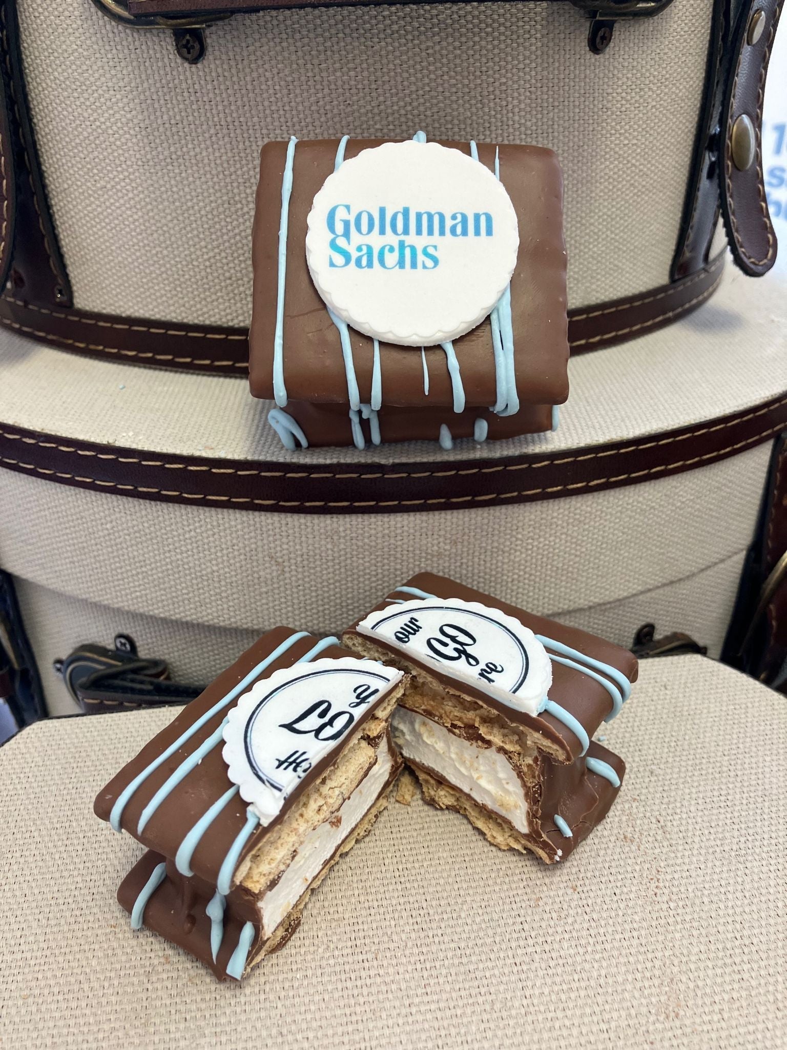 Everyone likes chocolate covered smores, especially ours! These decadent smores feature an extra layer of custom colored chocolate stripes!