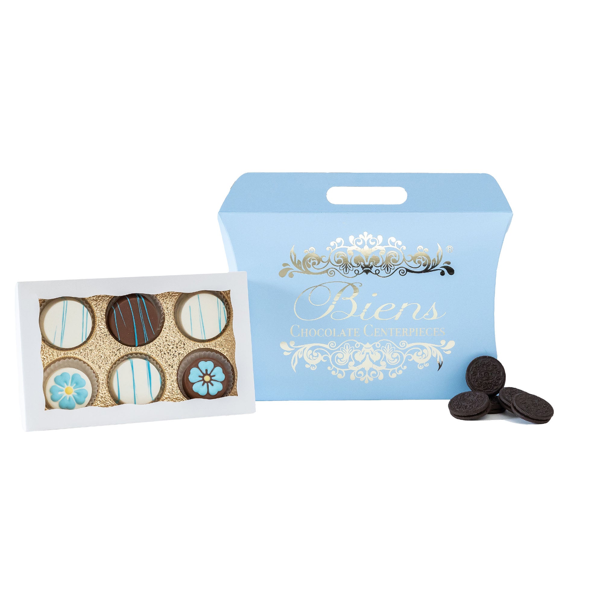 Surprise and delight with our Flowers Custom Oreo Purse Box, where edible artistry meets elegance in every bite. Ideal for Mother’s Day, tea parties, or simply as a charming gesture for any day worth celebrating, this box is filled with six chocolate-covered Oreos. Each cookie is beautifully hand-decorated with intricate flower designs, invoking the warmth and joy of a blooming garden. Gift this to the special women in your life or share it as a centerpiece for your next social gathering. It's a versatile, sweet treat that’s as fitting for the grandeur of Mother’s Day as it is for the simple pleasure of an afternoon tea.