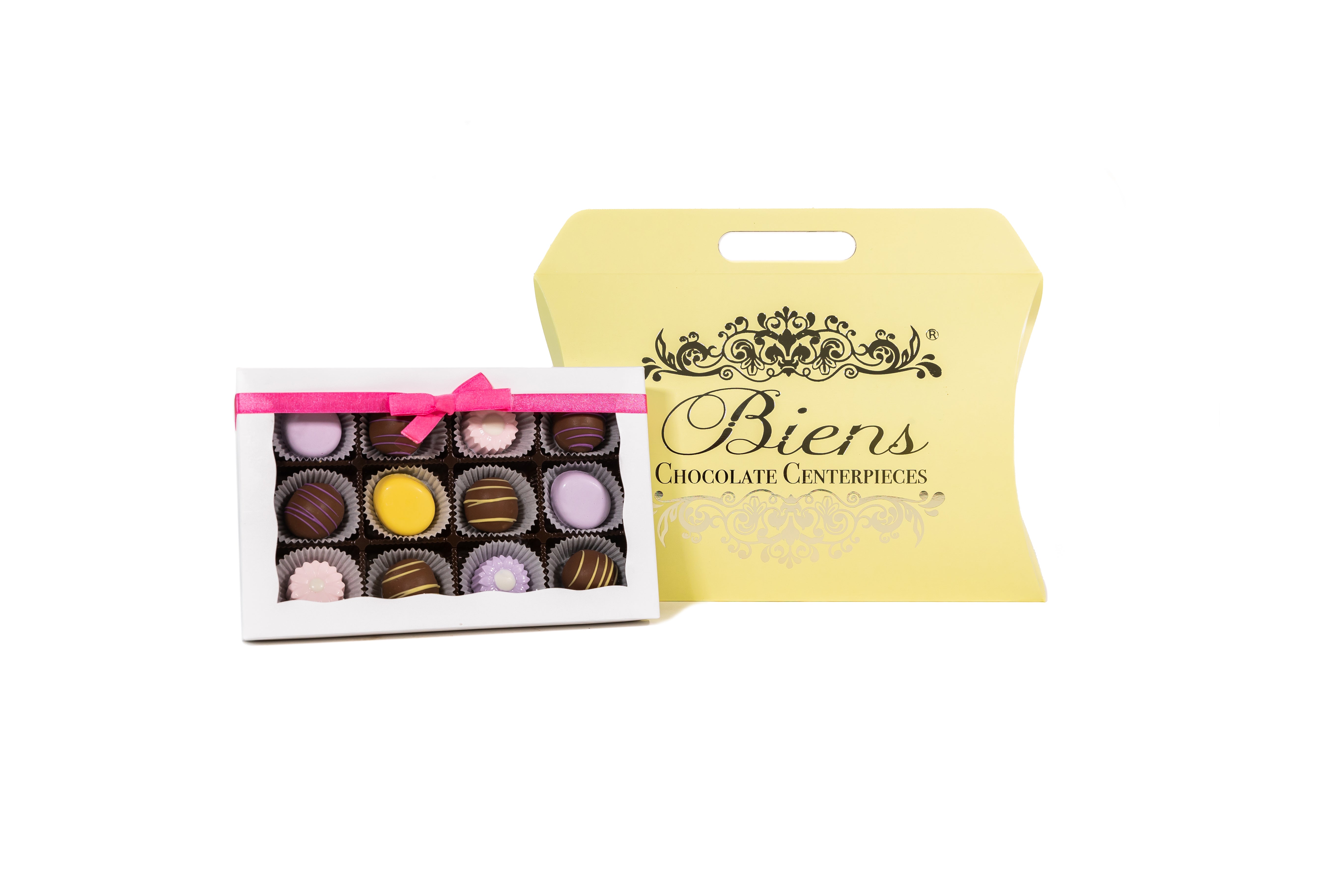 Bunny kisses and Easter wishes. Gather your friends and family around this beautiful purse box this Easter. The purse box includes a variety of our delicious chocolate treats to keep all your guests hoppy!