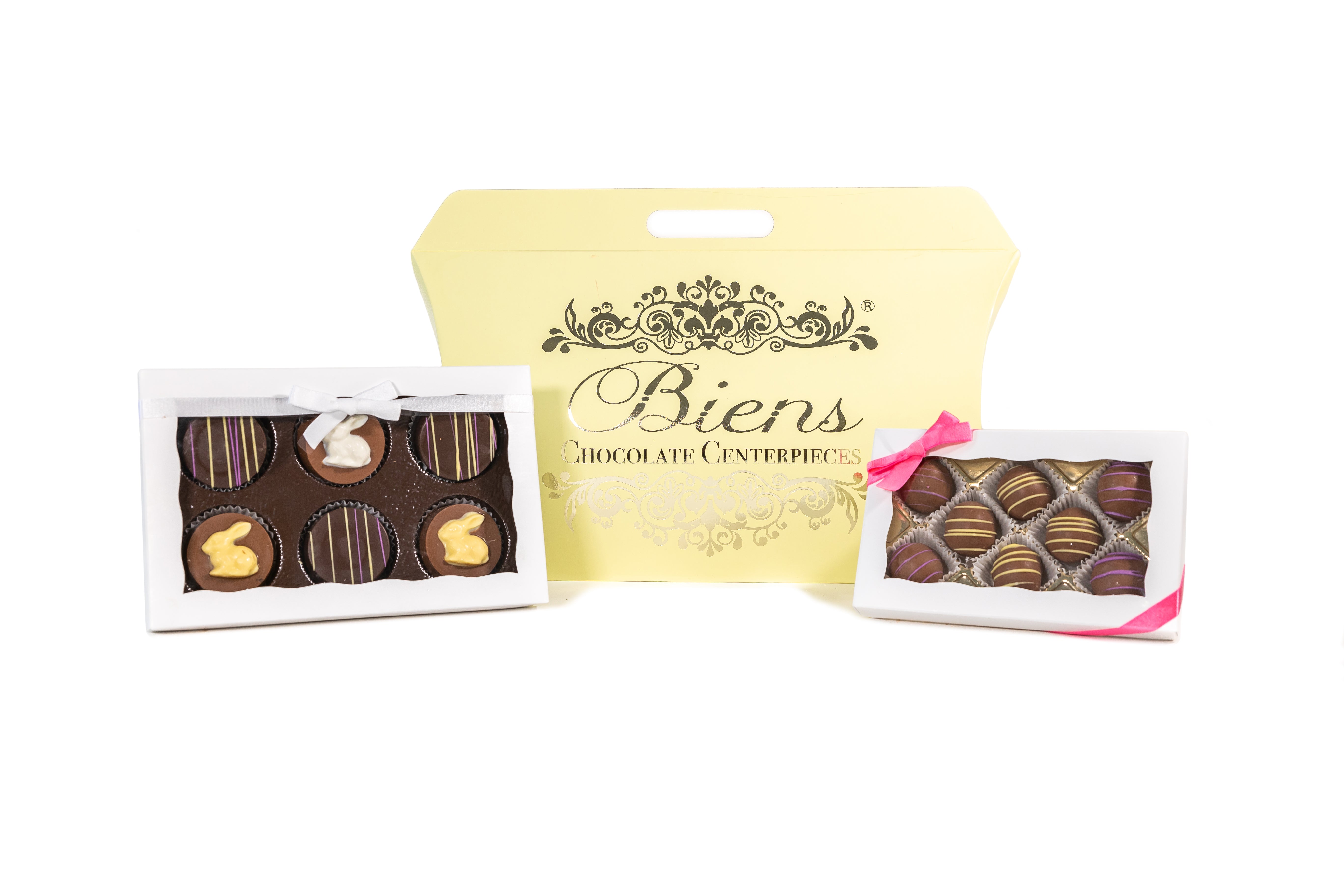 Bunny kisses and Easter wishes. Gather your friends and family around this beautiful tulip tote box this Easter. The tulip tote box includes a variety of our delicious chocolate treats to keep all your guests hoppy!