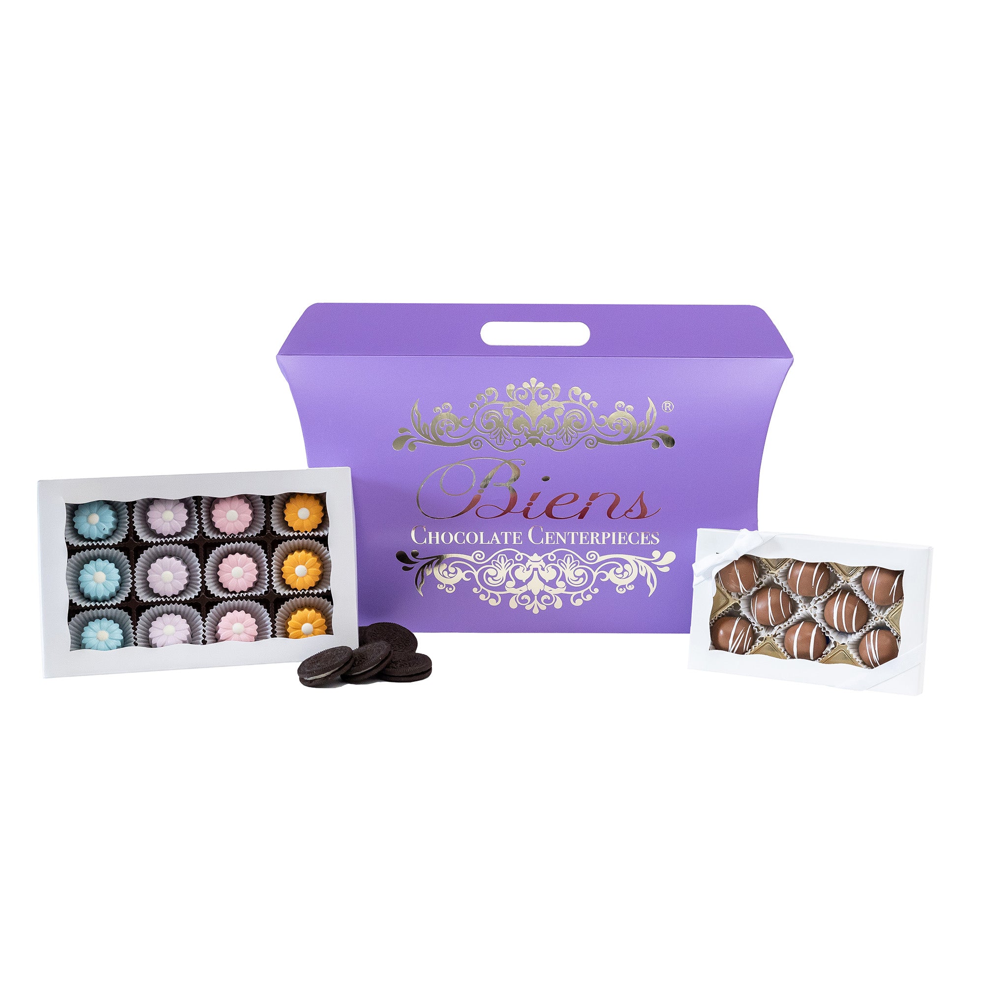 Surprise and delight with our Flowers Mini Custom Oreo & Bien Tote Box, where edible artistry meets elegance in every bite. Ideal for Mother’s Day, tea parties, or simply as a charming gesture for any day worth celebrating, this box is filled with a dozen mini chocolate-covered Oreos and our signature Biens. Each cookie is beautifully hand-decorated with intricate flower designs, invoking the warmth and joy of a blooming garden. Gift this to the special women in your life or share it as a centerpiece for your next social gathering. It's a versatile, sweet treat that’s as fitting for the grandeur of Mother’s Day as it is for the simple pleasure of an afternoon tea.
