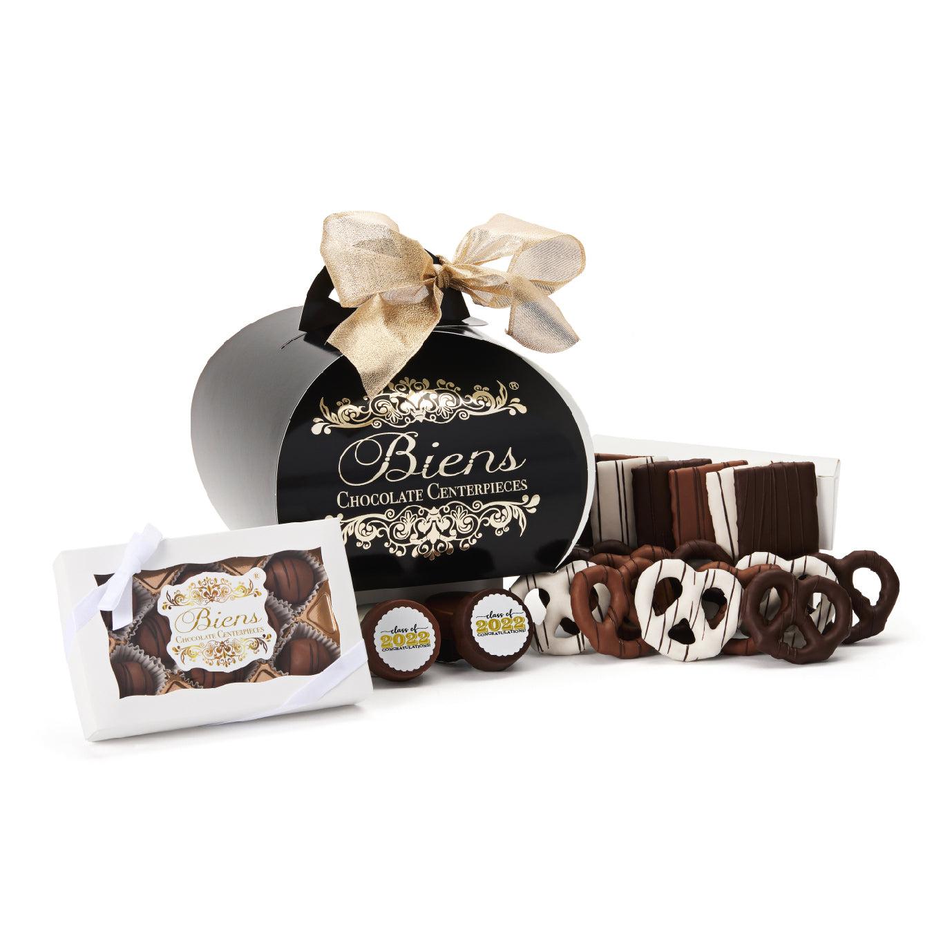 Say Congrats to your graduate with this A+ assortment of chocolate covered items! Each of our large Tulip Boxes is bursting with everyone's favorite treats to keep them smiling all week long!