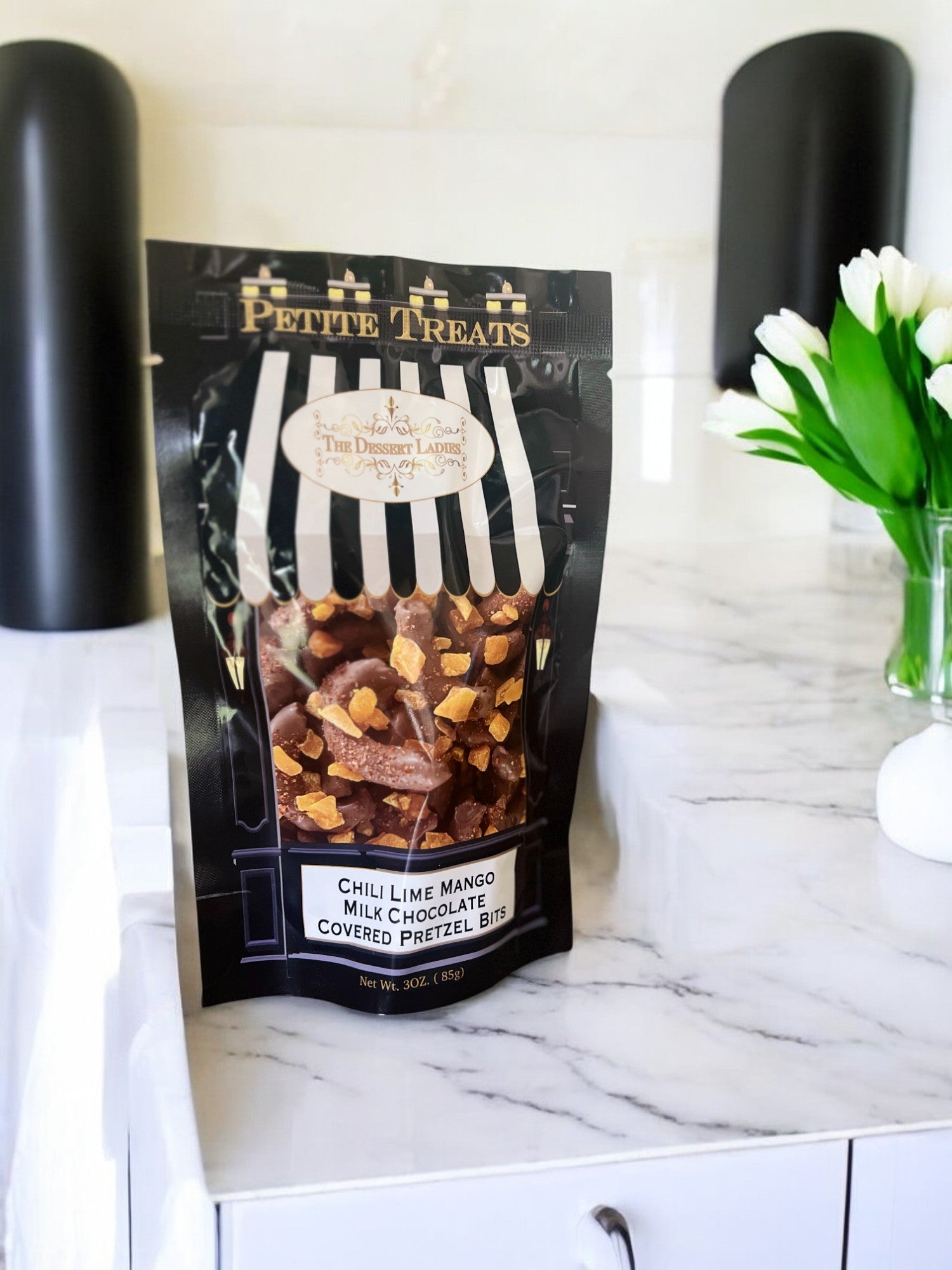 Turn up the flavor with Chili Lime Mango Milk Chocolate Covered Pretzel Bits. Bright mango sweetness, zesty lime, and a hint of chili heat meet creamy milk chocolate and golden pretzels. The result? A vibrant, snackable fusion of sweet, spicy, and tangy perfection — an unforgettable treat for flavor explorers.